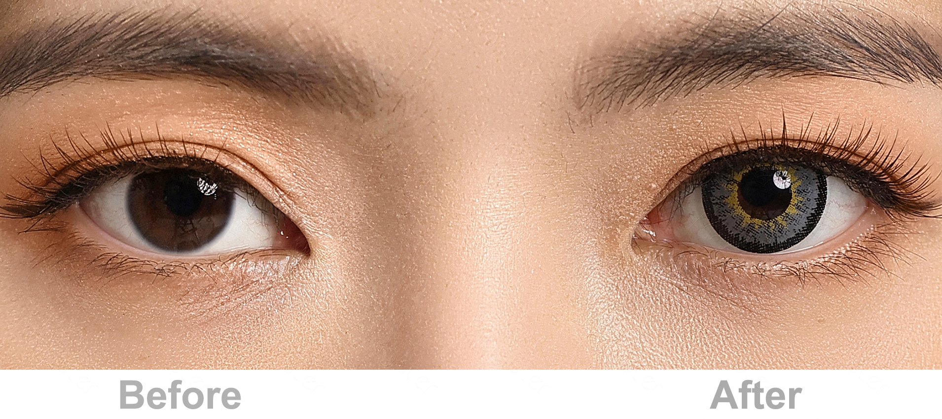 Due to variable factors, such as light, camera lens filters, surrounding colors, original eye color/ eye shape/ makeup, etc, the color of the lenses may vary and look different. Such cases should be acceptable.