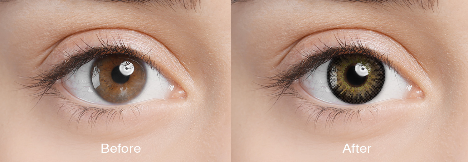 Debido a factores variables, como la luz, los filtros de lentes de la cámara, los colores circundantes, el color original de los ojos/ forma de los ojos/ maquillaje, etc., el color de las lentes puede variar y verse diferente. Tales casos deben ser aceptables.