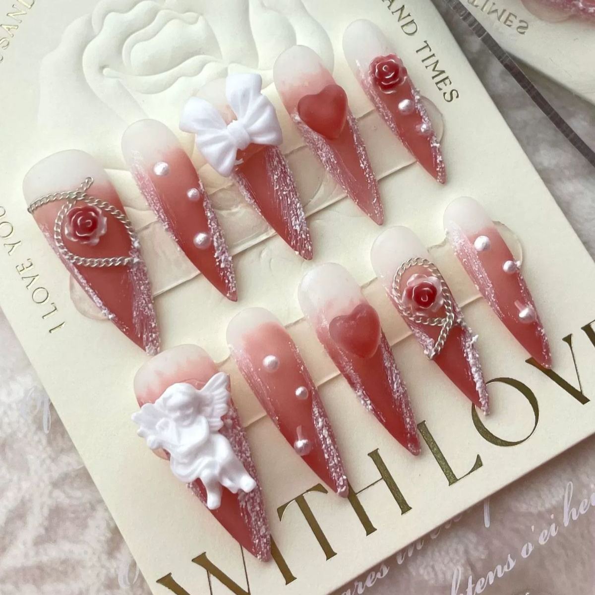 Angel Heart Red Nails