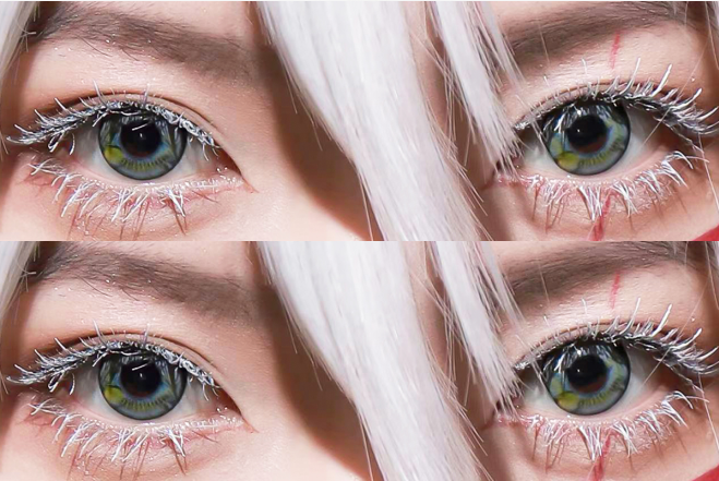 Due to variable factors, such as light, camera lens filters, surrounding colors, original eye color/ eye shape/ makeup, etc, the color of the lenses may vary and look different. Such cases should be acceptable.