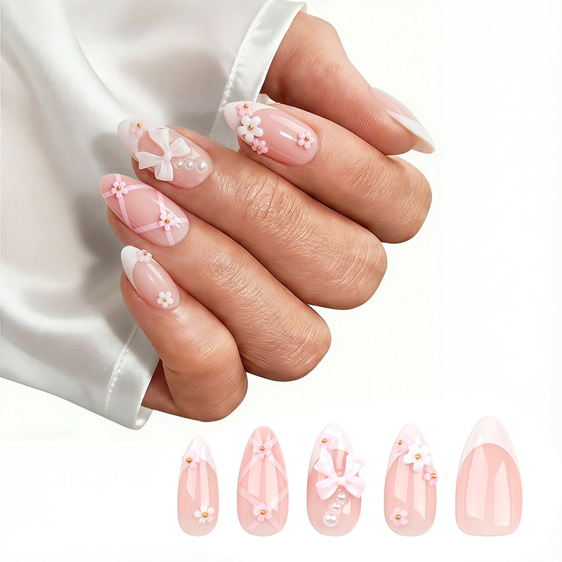 Charming Bow Pink Nails