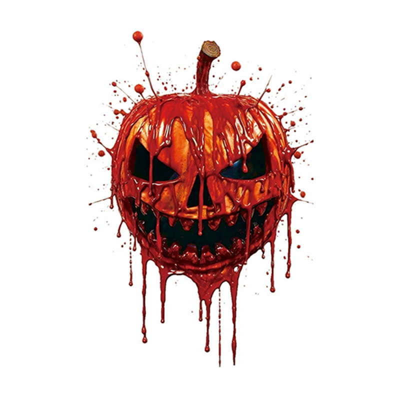 Unleash pure Halloween horror with our grotesque bleeding pumpkin temporary tattoo. This spine-chilling design features a sinister jack-o'-lantern with hyper-realistic blood effects that appear to drip from its twisted grin and hollow eyes.