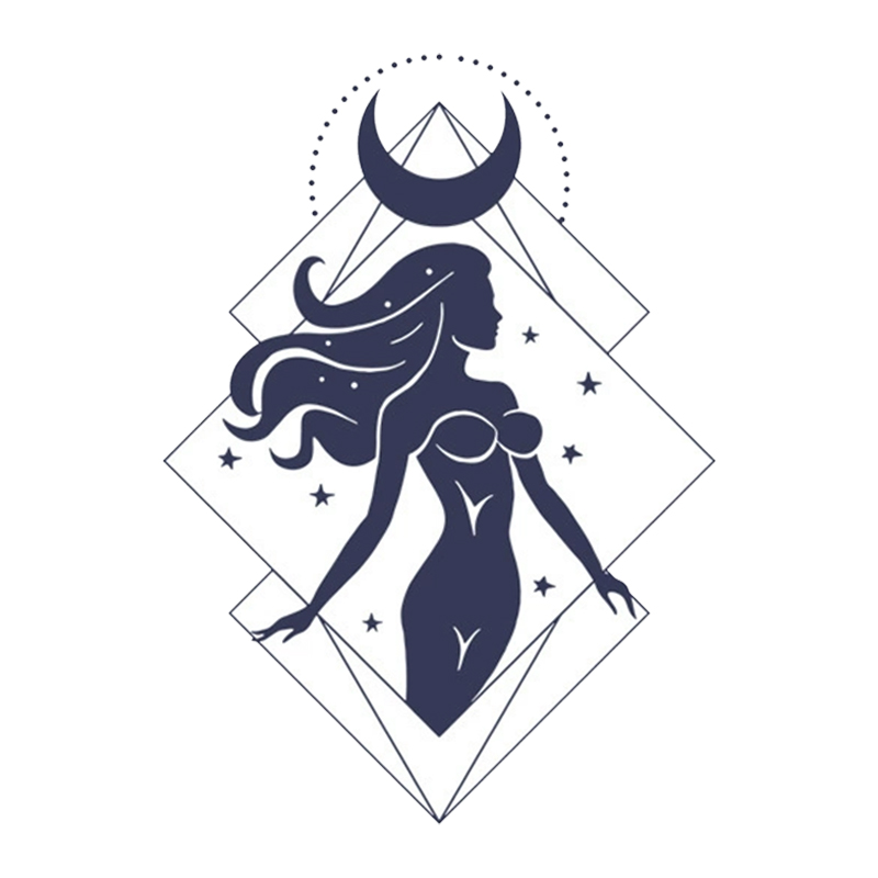 An enchanting temporary tattoo featuring an elegant female silhouette beneath a mystical crescent moon. This ethereal design captures the essence of feminine power and lunar mystery, creating a harmonious blend of grace and celestial beauty.