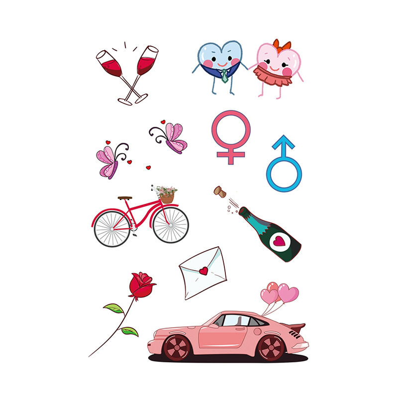 Celebrate love with this enchanting temporary tattoo. A beautiful blend of wine glasses, butterflies, love notes, and roses tells your unique love story. Perfect for couples, anniversaries, or anyone who believes in romance. Made with skin-friendly, long-lasting materials.