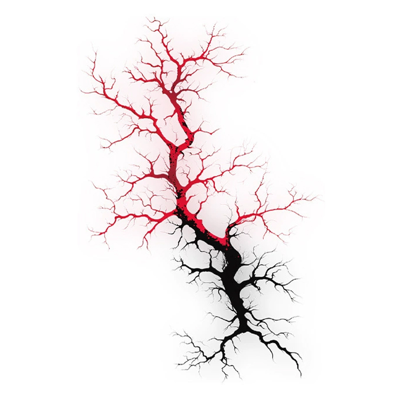 Experience the bold fusion of black and red with our striking Thunder Strike temporary tattoo. This edgy design features dramatic lightning bolts against a powerful dual-tone background, perfect for those who dare to stand out.